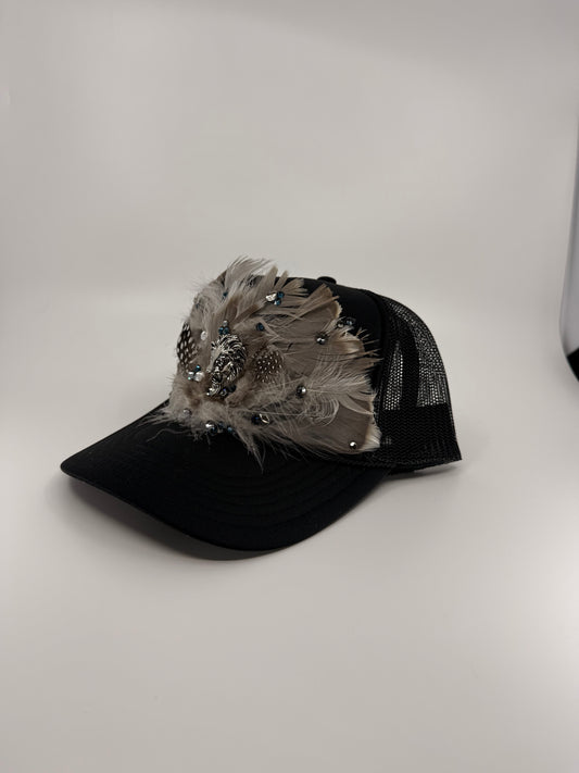 Feathered Trucker Hat - Black + White