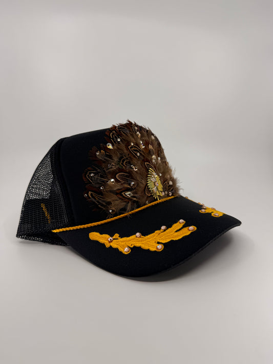 Feathered Trucker Hat - Black (Gold Leaf)